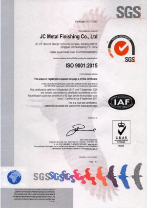 成立于2003年,致力于為中國華南地區的客戶提供高品質、高精密的電鍍服務。杰昌專長于高水平的功能性表面處理,在17年的發(fā)展歷程中,杰昌不斷研發(fā)與改進專業技術,并堅持以一流的技術、穩(wěn)定的品質和用心的服務來滿足客戶的不同需求。并通過了ISO9001:2015質量管理體系認證,現有客戶群廣泛覆蓋機械加工、模具制造、醫療器械、通訊設備等行業,精密表面處理已應用于高速列車、航天、精密連接器等領域。